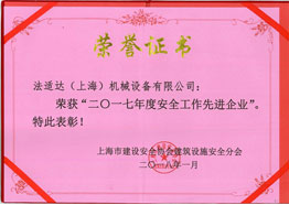 荣获市“2017年度安全工作先进企业”